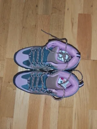 Botas de montaña con un diseño moderno y funcional. - Combinación de colores morado y turquesa. - Cierre con cordones. - Caña media para mayor sujeción. -talla 39