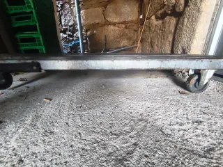 Plataforma de transporte con ruedas para facilitar el movimiento de objetos pesados. - Estructura metálica. - Ruedas para desplazamiento.