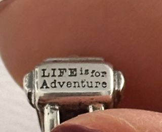 Charm mochila pandora con frase grabada Life is for adventure ....