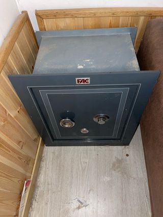 Caja fuerte de la marca Fac. yo la tengo sin empotrar, pero también se puede empotrar. medidas 53 de ancho por 60 de alto por 37 de fondo Tiene dos baldas interiores, tanto por fuera como por dentro, está impoluta tiene dos llaves y combinación