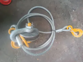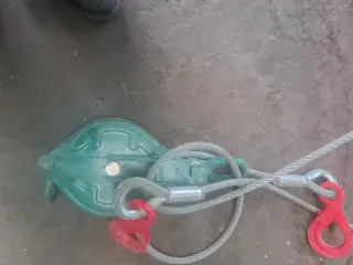 Conjunto de polea y ganchos para grúa, ideal para elevación. - Polea de color verde. - Ganchos de seguridad rojos. - Cable de acero resistente. Precio a nehociar