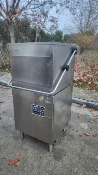 Lavavajillas industrial de cúpula ultimo modelo de jemi esta seminuevo Medidas: 775x850x1.440 mm. Sin Asa/Abierta: 665x760x1.900 mm. Medidas Cesta: 500x500 mm. Ciclo lavado: 2 minutos. Producción Platos/Hora: 640. Altura útil de lavado 400 mm. - Fabricado en acero inoxidable. - Diseño de capota. - Panel de control con botones.