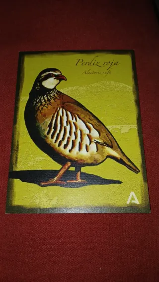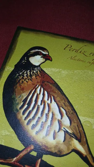 Imagen decorativa de una perdiz roja ideal para cuadro - Ilustración de ave. - Fondo verde con detalles. - Estilo pintura antigua - Tamaño 20×15 Se puede ver en persona, hago envíos.