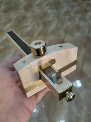 Herramienta gramil para ebanistería luthier bricolaje Hecho en madera de arce y latón... totalmente artesanal Con cuchilla olfa Japón. Artesanía Cádiz. - Cuerpo principal de madera. - Detalles en latón. - Varilla graduada para mediciones . - Pomo de ajuste.