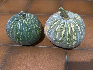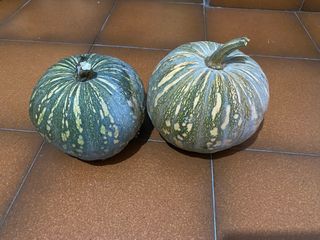 Dos calabazas de variedad cidra. Ideales para hacer cabello de ángel, o para decoración. Criadas ecológicamente sin pesticidas. Dispongo de más unidades.
