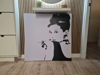 Cuadro decorativo con la icónica imagen de Audrey Hepburn. - Diseño en blanco y negro. - Estilo pop art.