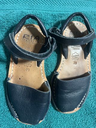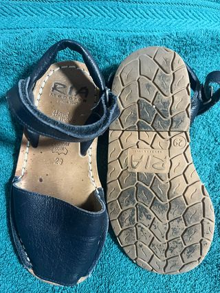 Menorquinas RIA de piel azul, hechas en España. - Talla 29. - Suela de cuero. - Hechas a mano.