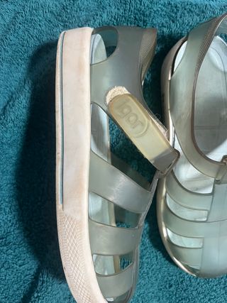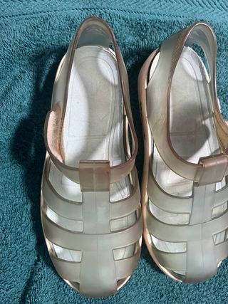 Zapatillas cangrejeras de la marca Igor, ideales para el verano. Son transparentes y cómodas. Talla 29 - Material: Plástico. - Color: Transparente/azul pálido. - Diseño: Cangrejeras con tiras. - Cierre: Correa ajustable.