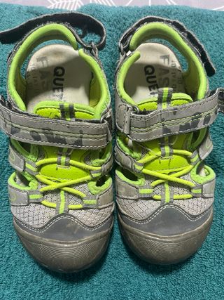 Sandalias deportivas Querolets para niños, perfectas para el verano. Número 30 - Color gris y verde lima. - Cierre de velcro y cordones elásticos. - Puntera reforzada.