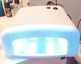 Lámpara para secado de uñas de gel o esmalte permanente. Cuenta con temporizador. - Botón de 120 segundos. - Botón Timer On para encendido continuo.