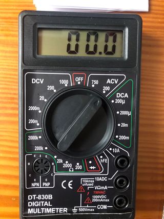 Multímetro digital DT-830B con accesorios. - Incluye puntas de prueba. - Manual de instrucciones. -NUEVO!!! con pila incluido. -Abierto para comprobar su buen funcionamiento. -Muy manejable por su tamaño