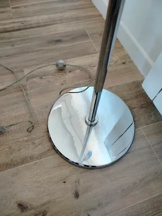 Elegante lámpara de pie con un diseño moderno y acabado plateado. Ideal para mesa comedor o para zona de estancia sofa - Estructura metálica. - Pantalla textil. - Base redonda. Medidas Alto máximo 250cm Ancho máximo 250cm Altura mínima 150cm Precio negociable