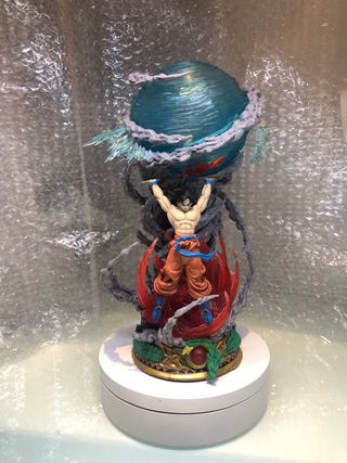 NUEVO!!! Figura de colección de Goku en su transformación Super Saiyan Dios, recreando una escena épica. - Base con efectos de fuego y energía. - Esfera de energía azul y morada con iluminación LED. -Se hace envío con excelente embalaje. Su caja original no está nueva. Tiene desperfectos. Adquirí tres para mis sobrinos y está al no estar la caja bien por eso su venta. Con las otras mis sobrinos quedaron encantados con la figura. -La figura es increíble!!! -Mi hijo tiene la misma y de todas las de Goku es la que más le gusta. -Pilas nuevas incluidas!!!