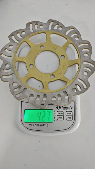 Disco de freno floreado para moto tipo pit bike. Fabricado en metal con un aro interior en color dorado. Disco Freno Moto Para 50 cc, 70 cc, 90 cc, 110 cc, 125 cc, para CRF50 XR, disco de freno delantero y trasero de 190 mm para motocross y Dirt Bike Freno Disco - Diámetro: 19cm. - Grosor: 3mm. - Peso: 427gr