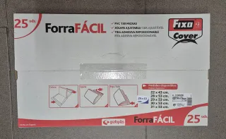 Caja de 25 fundas ForraFácil + 1 caja adaptadores + 33 estuches + 5 cepillos Top Model. - Solapa ajustable. - Tira adhesiva reposicionable. - Medidas disponibles: 22x43 cm, 28x53 cm, 29x53 cm, 30x53 cm, 31x53 cm. - Fabricado en España.