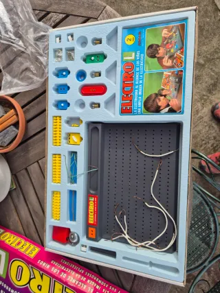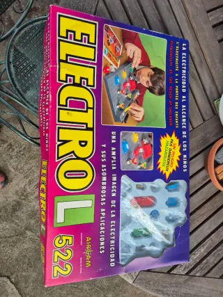 Juego educativo Electro L 522 de Airgam, años 80. Diseñado para que los niños aprendan sobre electricidad de forma segura. - Incluye componentes para realizar diversas aplicaciones. ( Falta alguno, ver fotos ) - Fabricado en España.