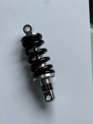Amortiguador de muelle de alta resistencia, ideal para sustituir o mejorar la suspensión y ganar confort y estabilidad en la conducción. Compatible con patinetes eléctricos Raycool, Dualtron, Urbanfox, Ecoxtrem, IMR, Etwow, Joyor, Infiniton, Easyway y también con ATV / quad de gasolina, siempre que las medidas coincidan. Características: Muelle reforzado de alta calidad Diseño compacto y robusto Mejora la absorción de baches y vibraciones Aporta mayor estabilidad y comodidad en la conducción Instalación sencilla (comprobar medidas antes de la compra)