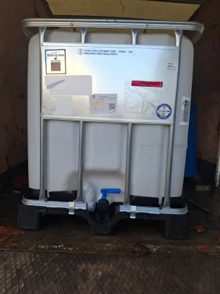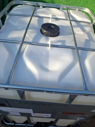 Bidón de 1000 litros con estructura metálica y grifo. - Capacidad: 1000 L - Homologado para transporte UN 31HA1/Y - Incluye grifo para vaciado