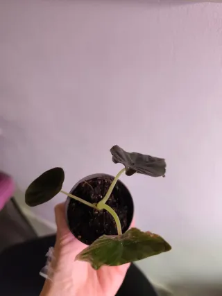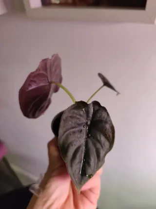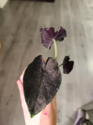Planta de interior con hojas de color oscuro y tonos rojizos. - Hojas con textura aterciopelada. - Tonos morados y negros. - Ideal para coleccionistas.