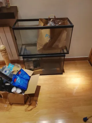 Todo por 40e 2 acuarios de cristal. - Acuario superior con marco negro. - Acuario inferior con marco negro. - Incluye caja con accesorios.
