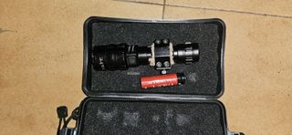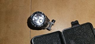 Linterna táctica negra para airsoft, con montura y batería recargable incluida. Ideal para equipar tu réplica. - Cuerpo de aluminio. - Incluye batería - Montura para riel.