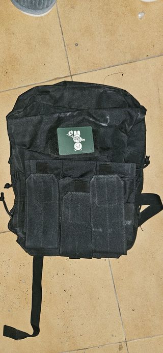 Mochila de hidratación tipo Camelbak, ideal para actividades al aire libre o airsoft. Incluye bolsa de agua y tubo. - Bolsa de agua de color verde oscuro. - Tubo de hidratación con funda protectora.( no usado) - Compartimento principal con cierre. - Sistema MOLLE para acoplar equipo adicional.
