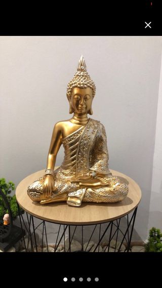 NUEVA!!! Figura decorativa de Buda en posición de meditación. Combina acabados dorados y plateados con un diseño detallado. - Figura de Buda. - Color dorado y plateado. - Diseño detallado. - Grande! 34 centímetros de altura.