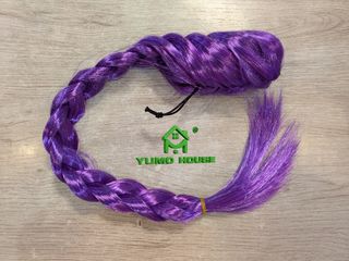 Peluca de trenza estilo K-POP para niñas, con una longitud de 60cm. Ideal para fiestas y disfraces. - Trenza larga de 60cm. - Color morado vibrante. - Incluye garras y red de cierre.