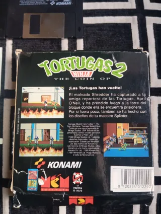 Juego Tortugas Ninja 2: The Coin Op para PC. - Incluye caja original. - Contiene 4 disquetes (Discos 1 y 2, Discos 3 y 4). - Formato PC 3 1/2. - Desarrollado por Konami y Mirrorsoft Ltd. IMPORTANTE NO los he probado NO se si funcionan La caja está ROTA por todos lados mirar bien las fotos por favor