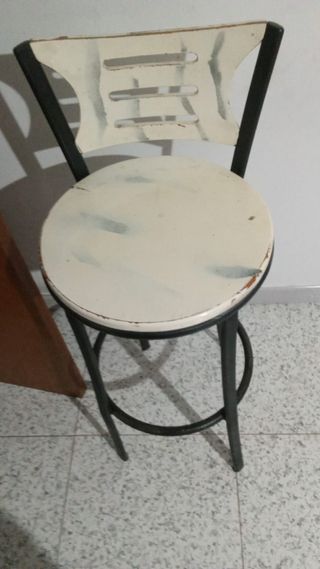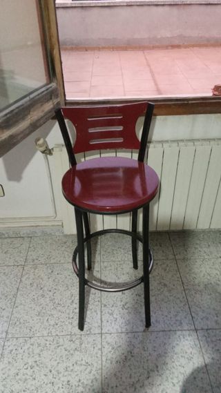 Taburetes de barra de madera y hierro tres están burdeos y tres en blanco se pueden pintar del color que más convenga en perfecto estado de venden juntas 250 las deis