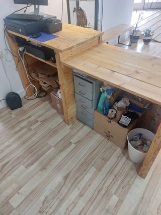 Mostrador de doble altura de madera hecho a mano y 2 valdas en la parte inferior medidas 95cm y 85cm de altura 2m de ancho y 59cm de fondo.