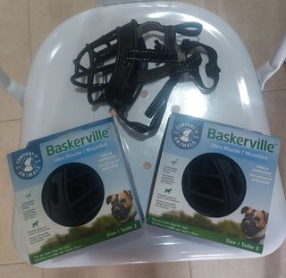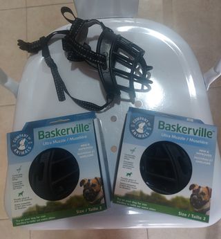 Bozal para perros como nuevos talla 2, solo probado y usados una sola vez tengo 3 todos la misma talla, a 8€ cada uno si te quedas los 3 lo dejo a 20€ dos tienen su caja y uno no la tiene como está en la foto.