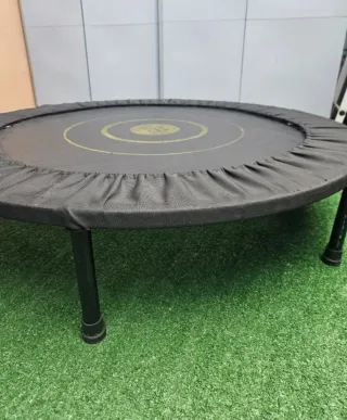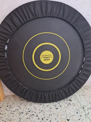 En buen estado poco uso y con patas.la compremos en decathlon para camping y se ha usado muy poco. Diámetro: 100cm aproximadamente con 80 cm de diámetro de salto. Estructura de aluminio resistente,superficie de tela resistente. 36 muelles y patas extraibles..soporta hasta 100 kilos
