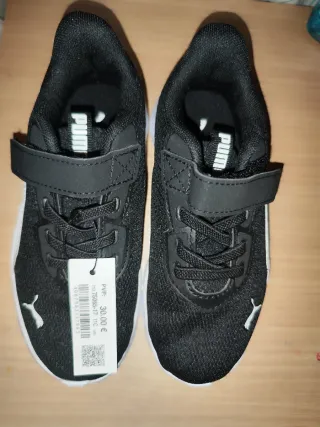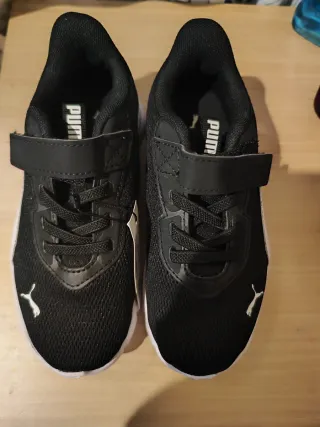 Zapatillas deportivas Puma para niños, con un diseño moderno y cómodo. - Cierre de velcro y cordones. - Logo Puma en el lateral. - Suela blanca. - Están nuevas y sin usar - Talla 29