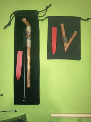 Aplicador de rapé artesanal. -Incluye accesorios para su limpieza y conservación. - Material de bambú con detalles decorativos de dibujos tribales con forma geométrica. - El producto que se envía es el que ves tal cual en la foto. En la artesanía nunca hay dos iguales así que si te ha gustado la forma color o el vetado que tiene la madera, el mismo que estás viendo es el que vas a recibir y no uno parecido.