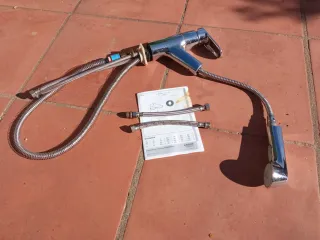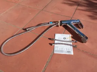 Grifo de cocina o baño de la marca Grohe, con acabado cromado brillante. Incluye las mangueras de conexión necesarias. - Diseño moderno y funcional. - Material: Metal cromado. - Mangueras de conexión incluidas. Escucho ofertas serias