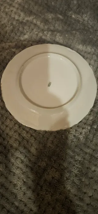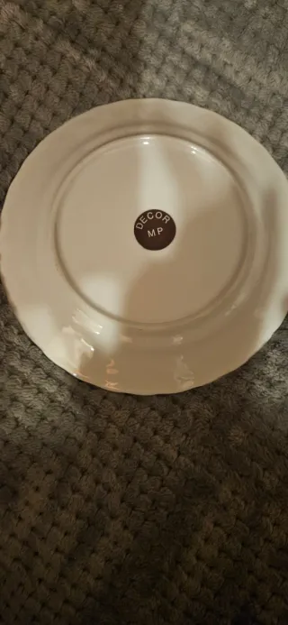 Elegante plato de porcelana con borde festoneado. - Fabricado en Limoges, Francia. - Diseño clásico y refinado.