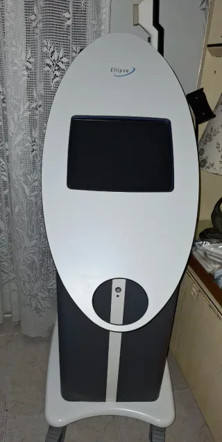 Equipo láser Ellipse con pantalla. - Diseño ovalado en la parte superior. - Pantalla integrada. - Base con ruedas para fácil movilidad.