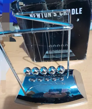 Juego de bolas de Newton para demostraciones físicas. - Base cromada. - Marco metálico. - Bolas de acero. Es un producto de liquidación que ha estado en exposición pero esta nuevo. La caja esta deteriorada como se ve en las fotos pero el producto esta nuevo. (LT10-501072)