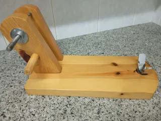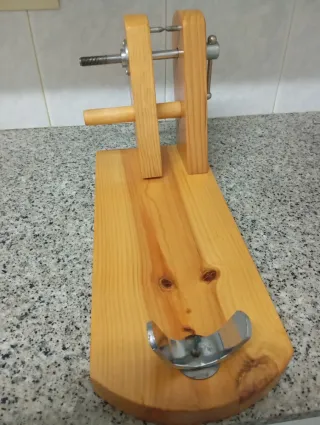 Soporte de madera para pernil. - Fabricado en madera. - Incluye tornillo de sujeción metálico. - Base estable.