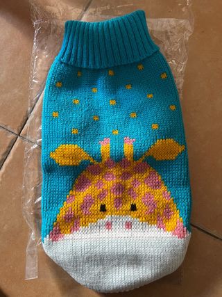 Jersey de punto para perro pequeño, es como de lana. Tiene cuello alto, para que le cubra bien. Se ajusta perfectamente. Como ejemplo: En un yorkshire de 2kg le queda un pelin grande.