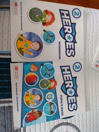 Heroes pupil's book 2, prácticamente sin usar (muchas hojas en blanco y alguna escrita a lapiz). Ideal como libro de complemento en casa para deberes. Regalo el workbook como refuerzo por estar escrito a lápiz.
