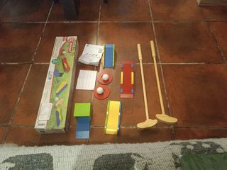 Vendo juego de minigolf de lidl de madera en perfecto estado excepto los palos que están un poco gastados por abajo (foto). Incluye 2 palos de golf, 2 bolas, caja, manual, hojas para anotar resultados, y todos los accesorios.