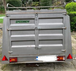 Remolque de carga marca SPEEDREM. Año 2022. - Color gris. - Doble eje. - Eje central. - Ruedas metálicas. - Freno automatico - Caja cerrada con elevadores hidraulicos. - 750Kg de carga.