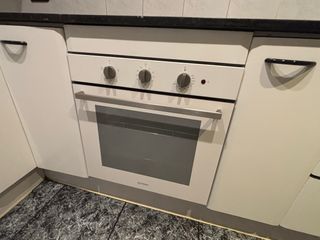 Horno eléctrico de empotrar en color blanco. Cuenta con un diseño moderno y funcional para tu cocina. - Panel de control con mandos. - Puerta con cristal. - Tirador metálico.