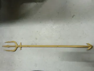 Tridente Rey del Mar, largo 107cm nunca se ha usado, color dorado, ideal para disfraces o juegos. - Diseño con tres puntas. - Mango con detalles. - Material plástico.