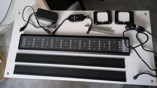 Lámpara LED para acuario Week Aqua V Series V600, versión 3. 50 watios. 4000 lúmenes. Extensible, acuarios de 60 a 80 cm de largo. Diseño moderno y elegante. Color negro. Incluye los dos cobertores de luz, valorados en 23€.