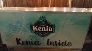 Barra de bar con diseño moderno y logo de Kenia con base de hierro con ruedas para moverla - Medidas:Largo2'42x62ancho x1'15alto - Iluminación LED integrada. - Acabado frontal con el nombre Kenia Inside. - Ideal para eventos o locales.