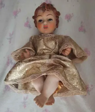 Figura decorativa del Niño Jesús. - Vestimenta dorada con detalles. 30 de largo 20 de Ancho 15 de Alto