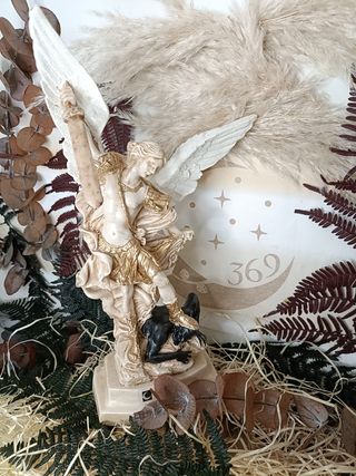 Figura del Arcángel San Miguel Hecha en Resina. Aporta fuerza, protección y poder espiritual a tu hogar con la Figura del Arcángel San Miguel, disponible en Lunaria369, tu tienda esotérica en Sanxenxo, Pontevedra. Esta majestuosa figura hecha en resina de alta calidad, representa al Arcángel San Miguel, conocido como el líder de los ejércitos celestiales, protector contra las fuerzas oscuras y defensor de la justicia divina. San Miguel es el símbolo de la fuerza, la protección y la valentía para afrontar los desafíos espirituales y mundanos. El color que representa al Arcángel San Miguel es el azul, asociado con la protección